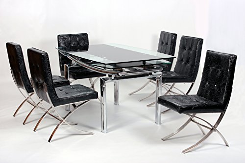PRODUCT DESCRIPTIONS:Luxor Chrome Legs and Extending Glass Top Dining Table.