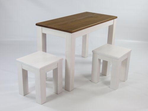 Brush with Furniture Wooden Dining Table Solid Pine Table 115 x 56 CM and 2 Stool in White / Walnut