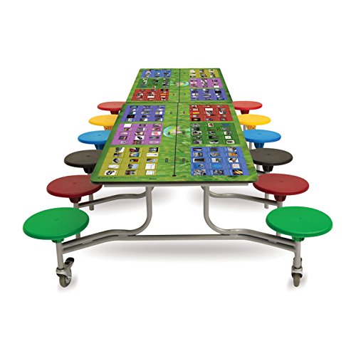PRODUCT DESCRIPTIONS:Rectangular Mobile Folding Table Seating Units with 12 seats. Laminated modern history themed worktop - specially designed to bring fun, facts and increased awareness to dining rooms and class rooms. Frame and legs Grey. Table heights for 12 seat units are 685 or 735mm. Unit length is 3080mm and unit width (incl stools) 1500mm. Seats are 330mm diameter in a range of 10 colours - Yellow, Red, Blue, Green, Wine, Lilac, Blueberry, Pastel Orange, Pastel Green or Black. This product has a 16 year warranty ( terms and conditions apply). These products are shipped/made to order and as such are non-returnable or cancellable once placed. Leadtime on these items is @ 7-10 working days. Other sizes and colour options available on request call 01359 298072. If you need help working out which style and size will work best for your space, call our team on 01359 298072 and we can arrange a free site survey and demonstration if required. Further quantity discounts available on 4 or more units - call for more info! . Supplier reference: 9SRL101229ST3. Our code: 9SRL101229ST3. TO ARRANGE A PRODUCT DEMO OR FREE SPACE ASSESSMENT CALL 01359 298072