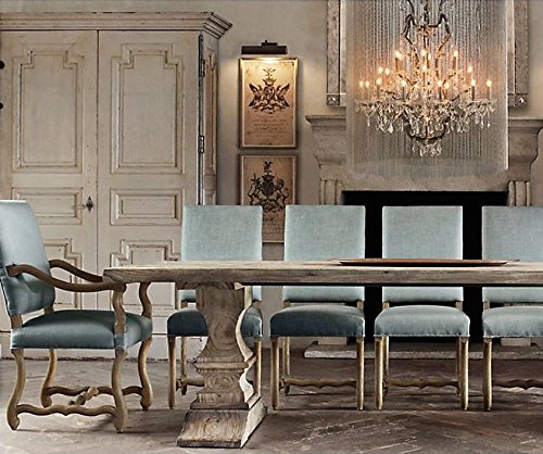 PRODUCT DESCRIPTIONS:Ashfield dining table Drawing inspiration from 18-century Europe, our solid oak table features exquisite, hand-carved supports. To achieve the beautifully weathered character of an antique, skilled artisans employ a painstaking, multistep finishing process. Product details... • Handcrafted of finished, solid salvaged oak timbers from 100-year-old buildings in Great Britain, 45mm solid oak tops- very heavy and strong • Rough-hewn salvaged oak planks, which will vary somewhat in colour and grain, are carefully hand-selected, planed and lightly hand sanded, yet may show marks of previous use • Finished, sealed salvaged oak bears a timeworn patina and includes distinctive nicks, splits, cracks, knots and imperfections that speak of the wood's age and provenance. Salvaged wood will continue to change over time as it interacts with its home environment, and will age beautifully. • Handsomely distressed and generously sized to accommodate large gatherings • By their nature, sealed salvaged oak may be somewhat uneven and may cup or bow over time due to changes in temperature or humidity. We believe this only enhances the table's rustic, unique character. • This item is artisan-crafted with meticulous care. Given its handmade and hand-finished nature, variations and imperfections in the wood are to be expected and celebrated. Each salvaged item is an original and no two pieces are exactly alike. • Care: Wipe using a damp cloth with mild soap and water, followed by a dry cloth. Wipe spills up immediately with a dry cloth. • For dining tables, use of tablecloths, placemats and coasters is recommended to prevent staining All of our tables are finished in Osmo Polyx Oil® that makes the oak stain resistant and water repellent, keeping your table safe from the likes of red wine and cola. We also add a wax to help protect the table further upon delivery