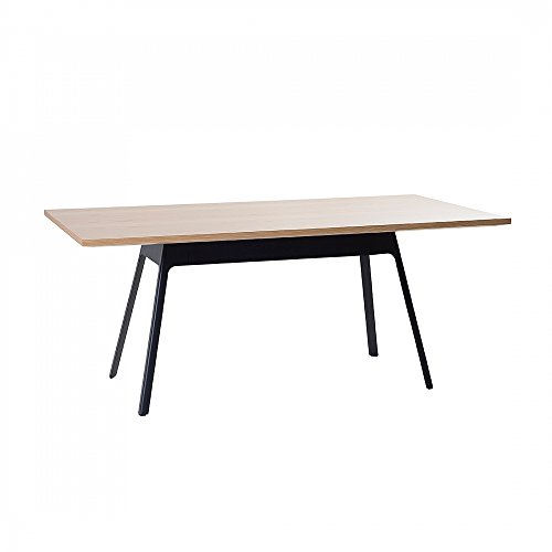 PRODUCT DESCRIPTIONS:Simple design of table will go along perfectly with any dining room thanks to its Scandinavian style. Light brown table top made from veneered MDF board is very durable and easy in maintenance. Elegant, polished, metal legs are slightly tilted outwards ensuring stability. This dining table is 74, 5 cm high and its table top is 180 x 90 cm. Modern dining room table will give your interior freshness and delicacy.Details:Colour: black, natural wood colour, Material:, Table top: MDF board resembling oak wood, Legs: metal, Total dimensions: 180 x 90 x 74,5 cm, Space between legs: 130 x 62 cm, Table top's thickness: 2,5 cm, Drawers: no. Assets- The table is made from high quality MDF board and metal. Incredibly easy in maintenance. The table goes along with chairs of different styles. Make your interior stylish. Easy assembly. Maintenance tips- Don't use microfiber cloth for cleaning, they may scratch the surface.Use linen and cotton cloth for cleaning.Stains can be easily removed with rubber. Don't use any abrasive agents. After cleaning the table with wet cloth, wipe it dry immediately.